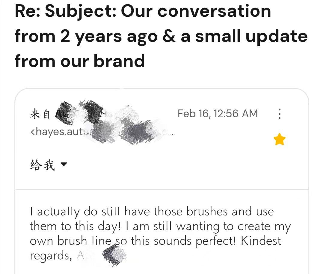 A customer shared that she’s still using her Sophienia brush after two years — a simple reminder that a first brush should still feel worth keeping.